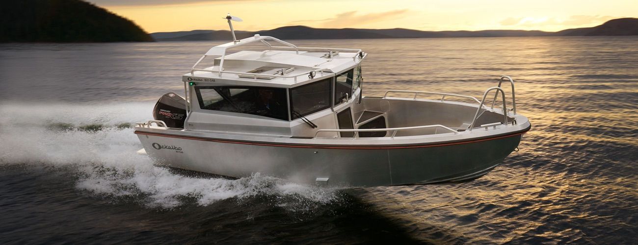 The Ockelbo 21” speed boat is moored on the river Ore just off the Quay at Orford.